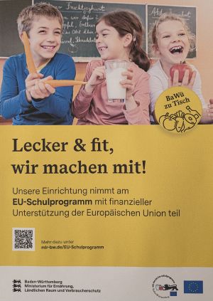 Unsere Schule nimmt bereits einige Jahre am EU- Schulfruchtprogramm teil. Über dieses Programm fördert die Europäische Union die Verteilung von Obst und Gemüse an Schulen